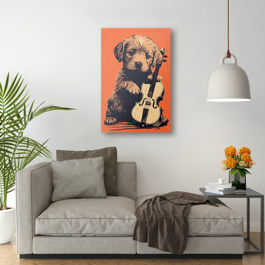 Puppy Playing Violin Wall Art