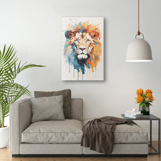 The Lion Abstract in Blue and Gold Wall Art