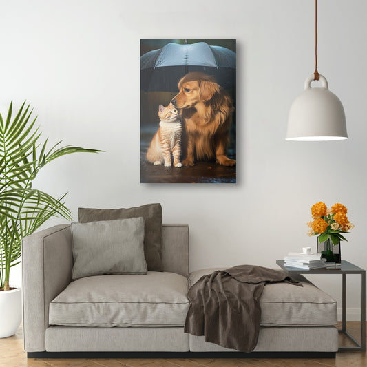 The Heartwarming Friendship of Dog and Cat Wall Art
