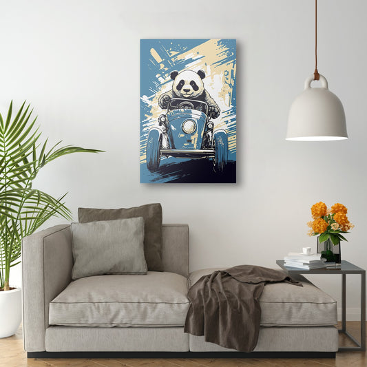 Panda's Joyride on blue toy car Wall Art