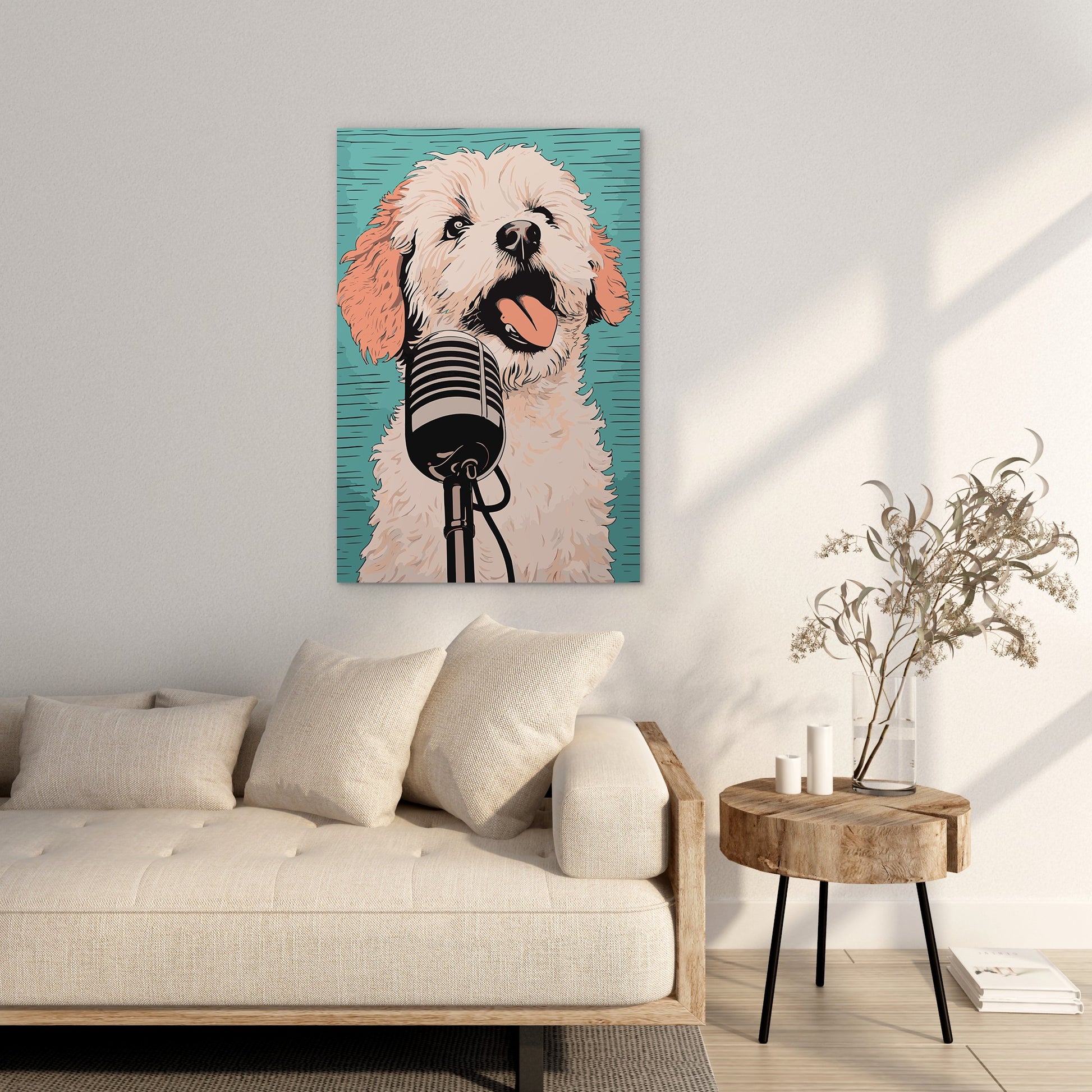 A Playful Puppy Singing Wall Art